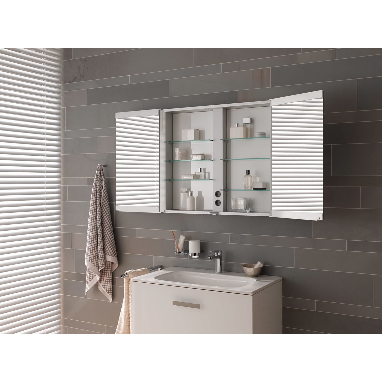 Keuco Royal Match Spiegelschrank Wandhalbeinbau mit LED-Beleuchtung 100 x 70 cm, CH Version