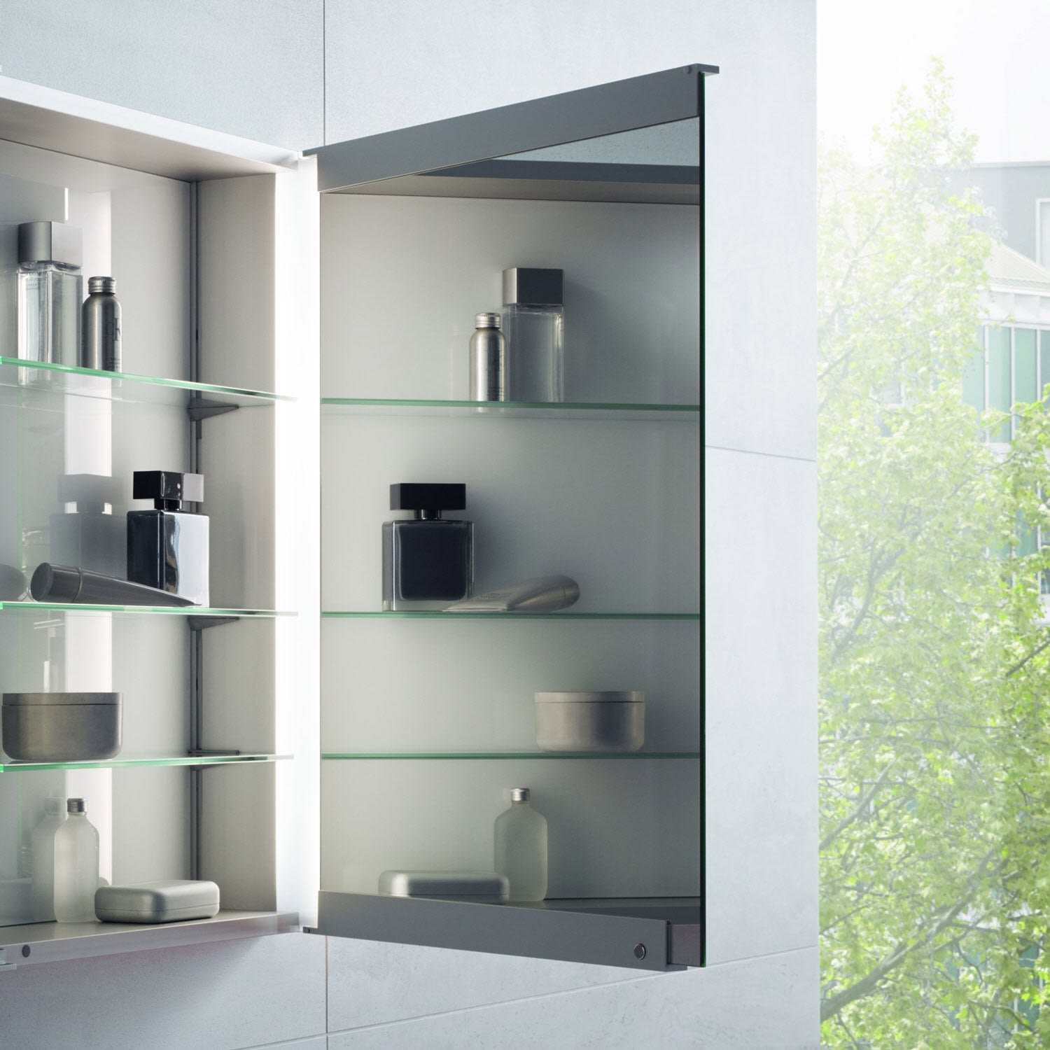 - 2 beidseitig verspiegelte Türen für eine perfekte Rundum-Sicht