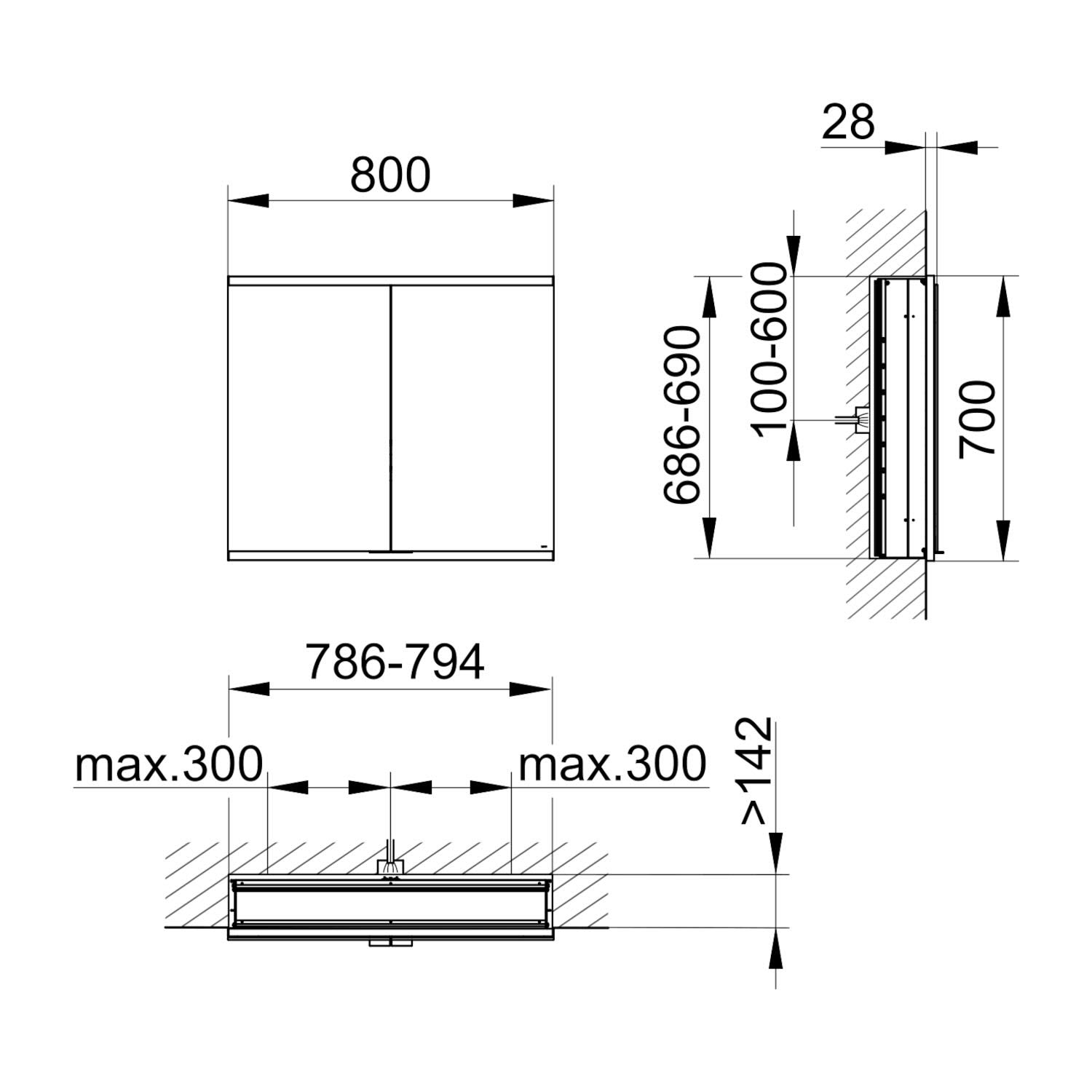 - Wandausschnitt: B: 78,6-79,4 T: min.14,2 H: 68,6-69 cm