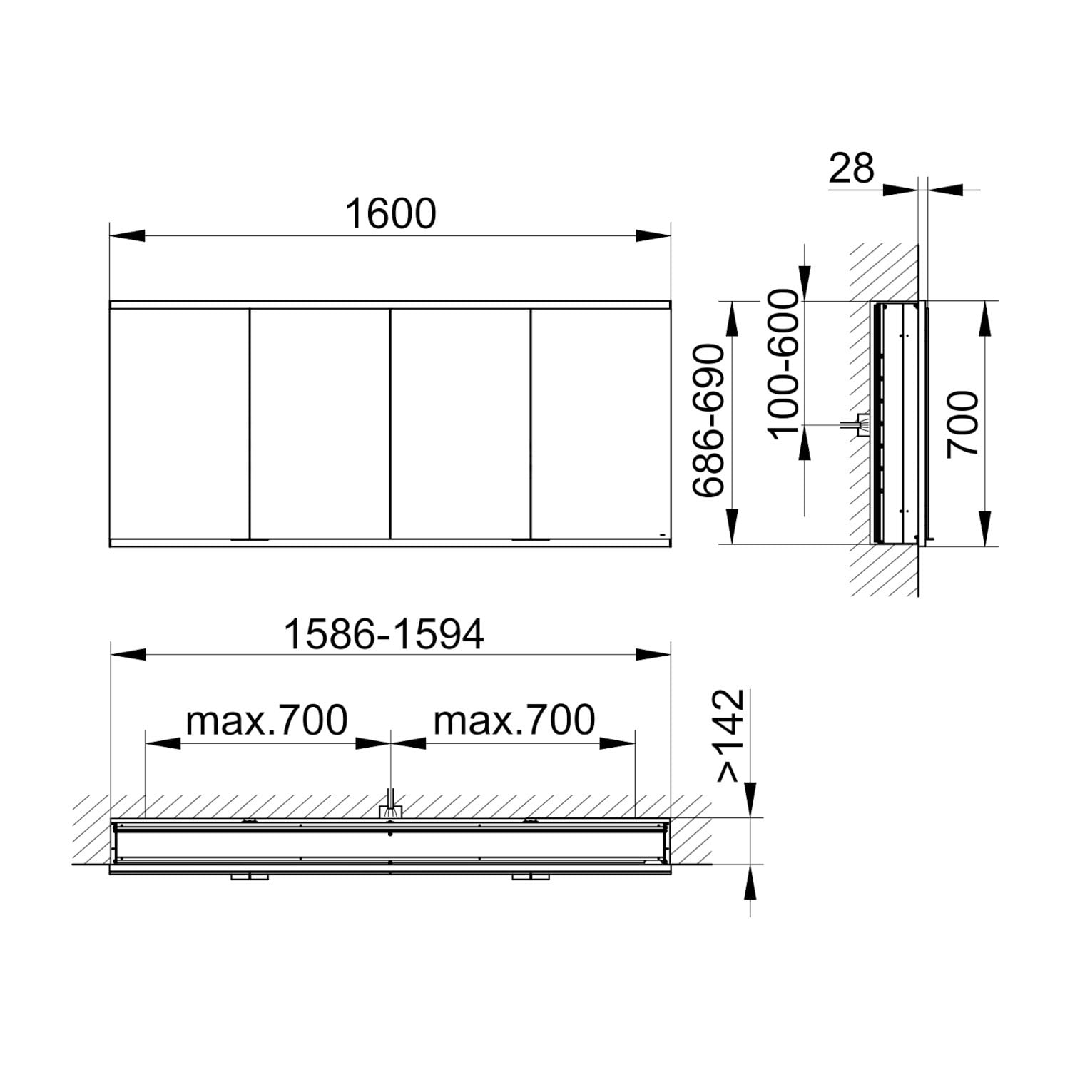 - Wandausschnitt: B: 158,6-159,4 T: min.14,2 H: 68,6-69 cm