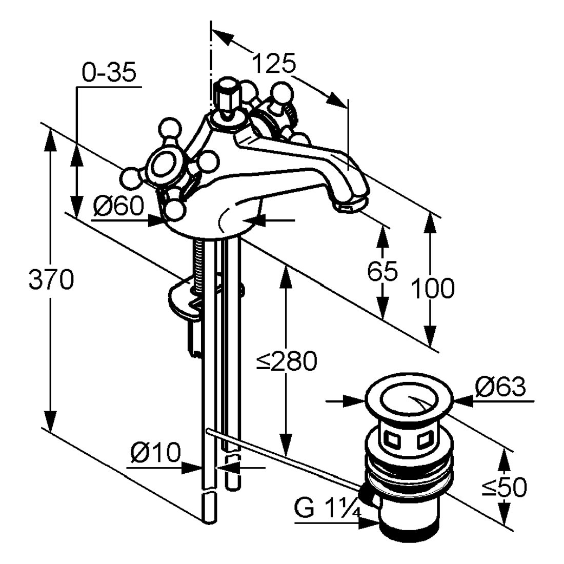 Kludi 1926 Waschtischarmatur DN 15 mit Ablaufgarnitur, Ausladung 12,5 cm