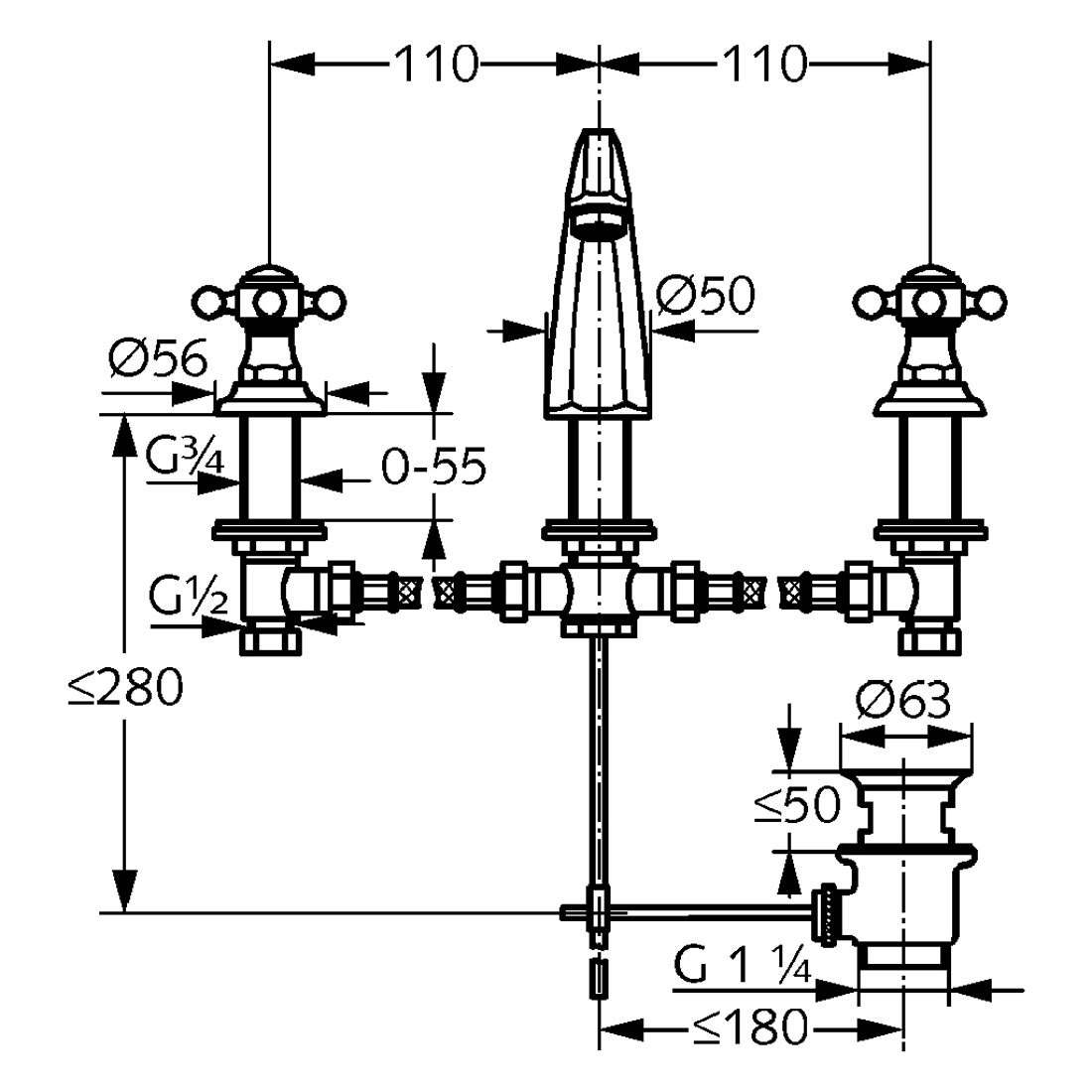 Kludi 1926 Waschtisch-3-Locharmatur DN 15, Ausladung 14 cm