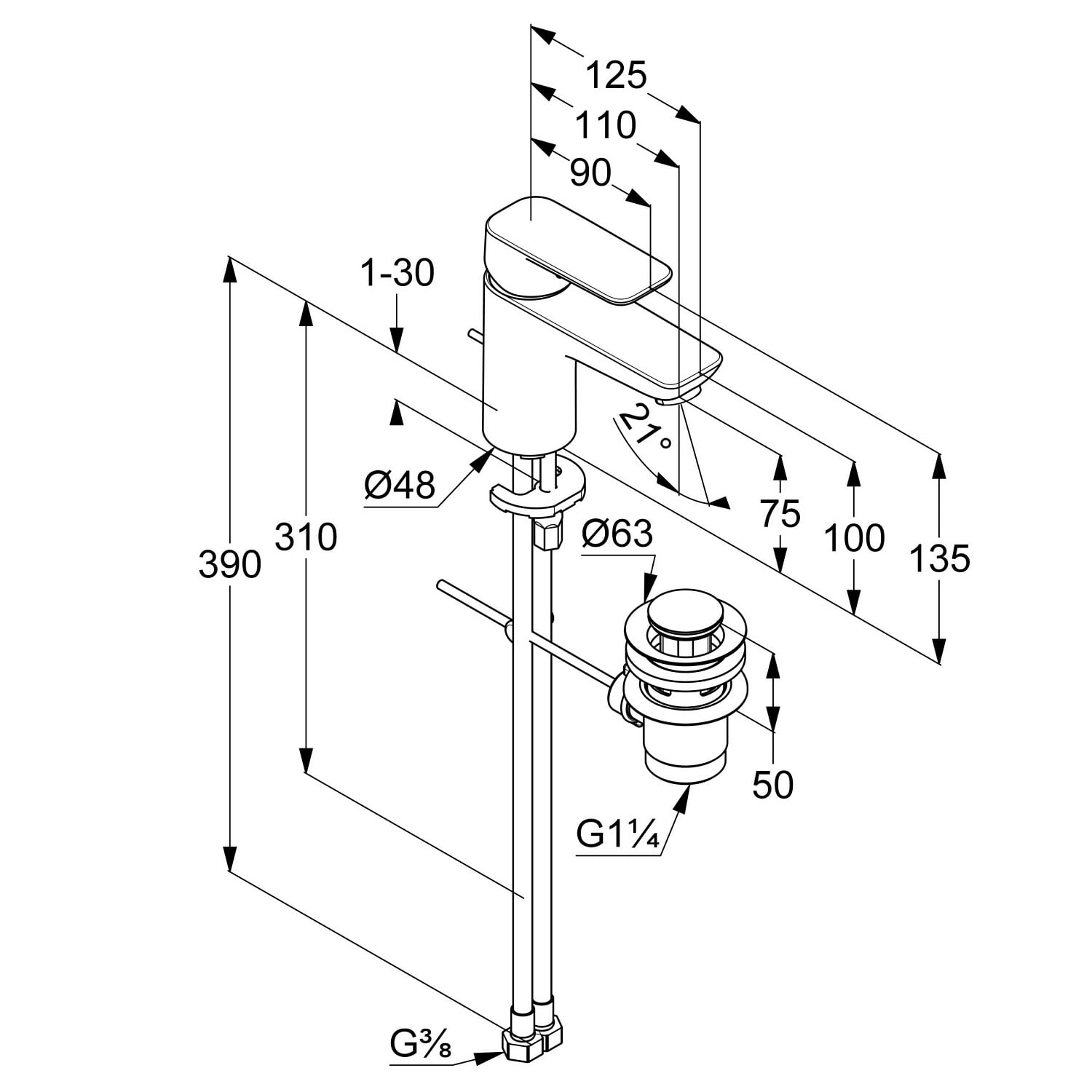 Kludi PURE&STYLE Waschtisch-Einhandmischer 75 mit Ablaufgarnitur