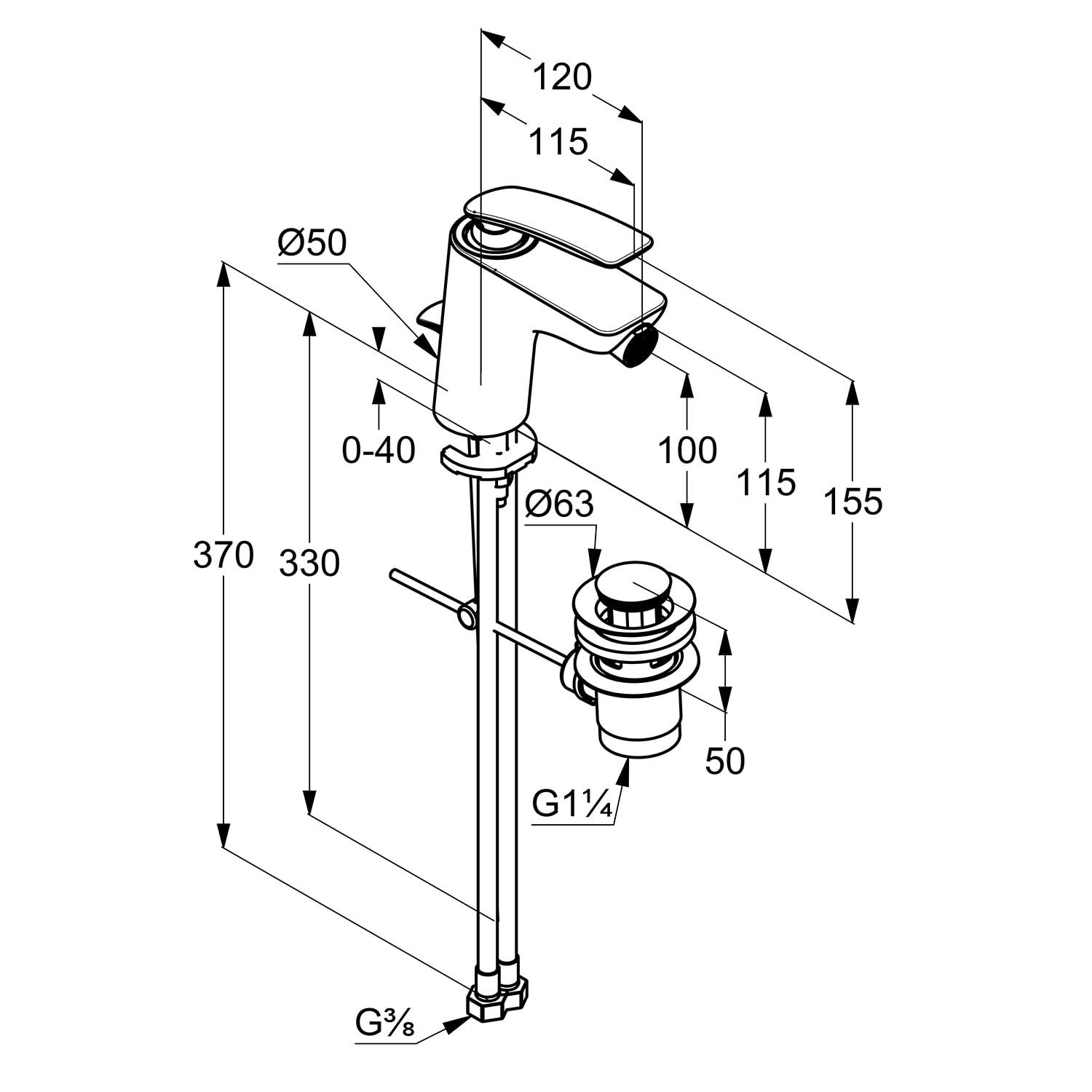 mit Zugstangen-Ablaufgarnitur