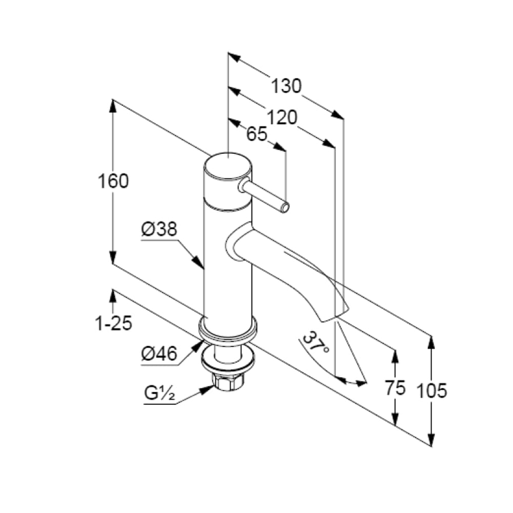 - Auslaufhöhe Unterkante 75 mm