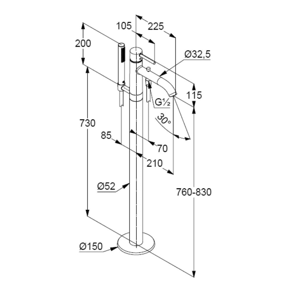 Kludi BOZZ freistehende Wannenfüll- und Brause-Einhandmischer mit Handbrause