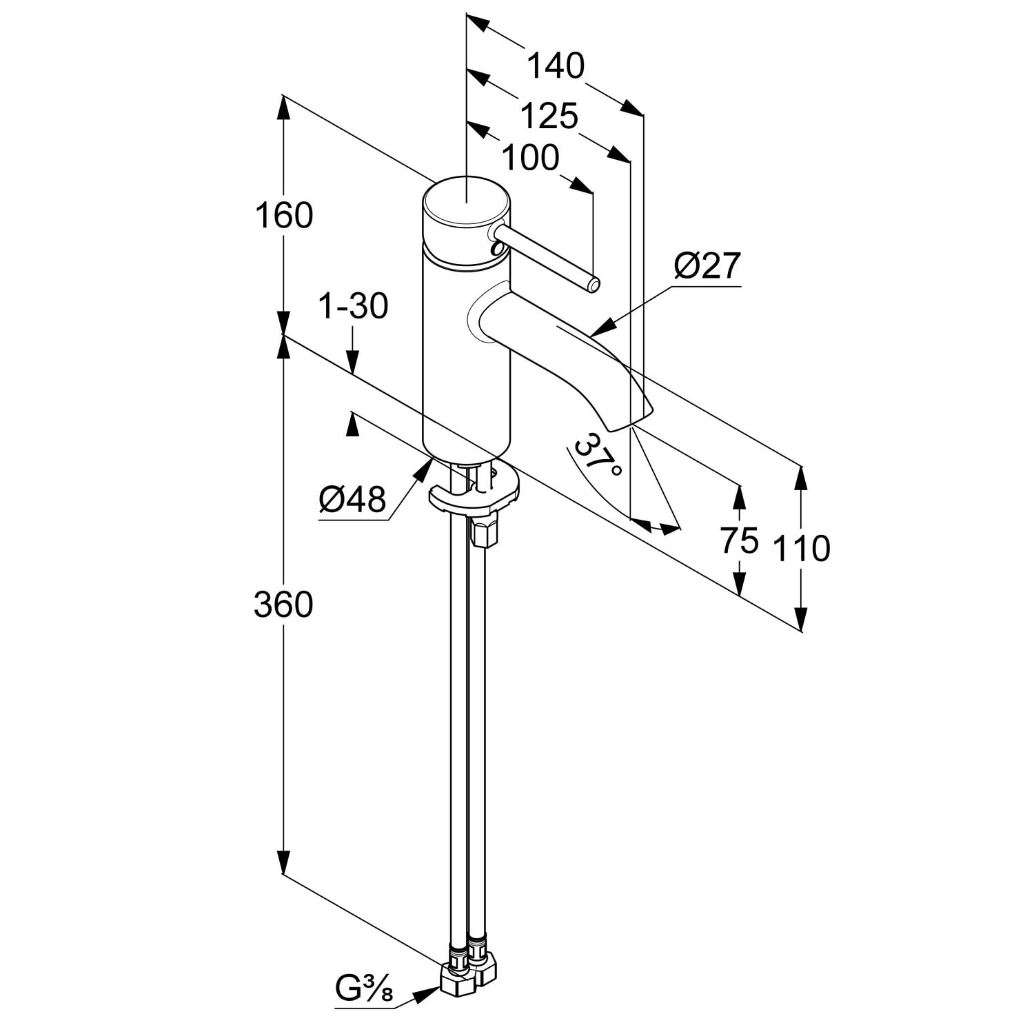 - flexible Anschlüsse G 3/8