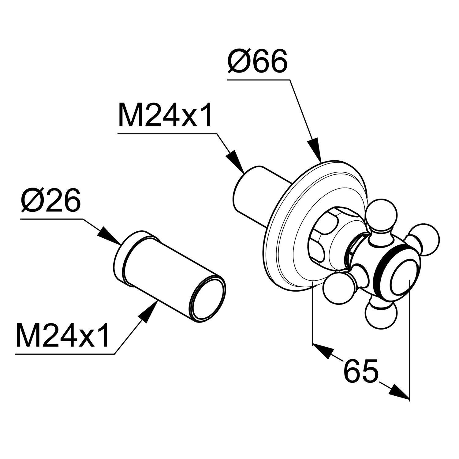 - bestehend aus Griff, Hülse, Rosette