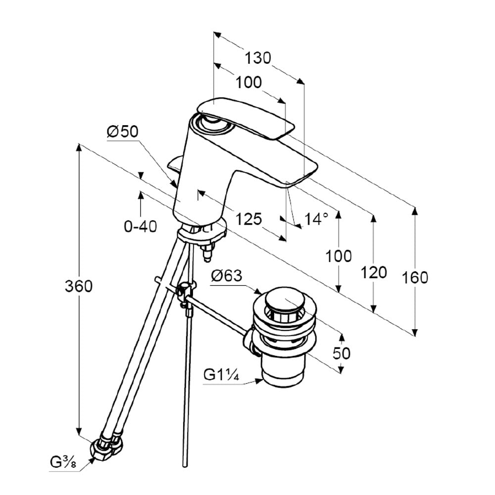 - mit Ablaufgarnitur G 1 1/4 und Zugstange