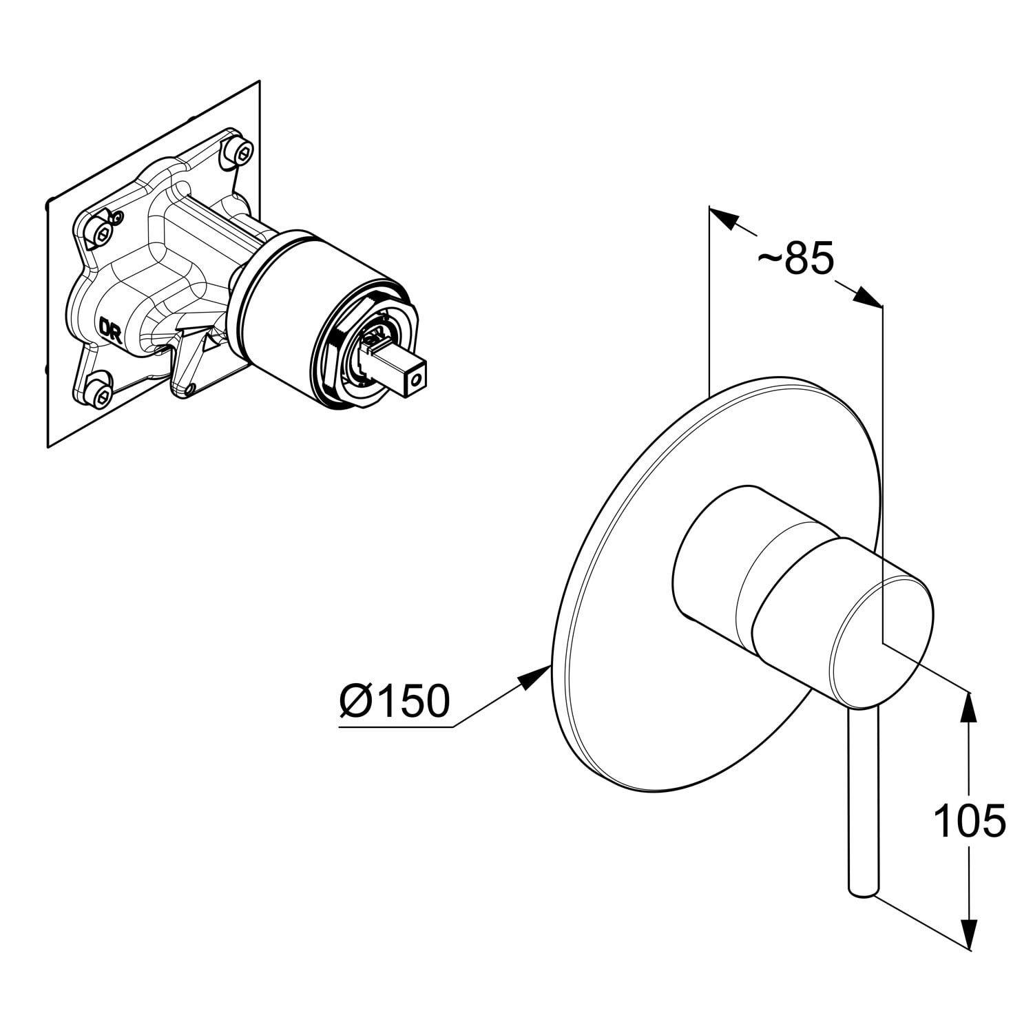 Kludi BOZZ Unterputz Waschtisch Zweiloch Wand-Einhandmischer, Ausladung 23 cm