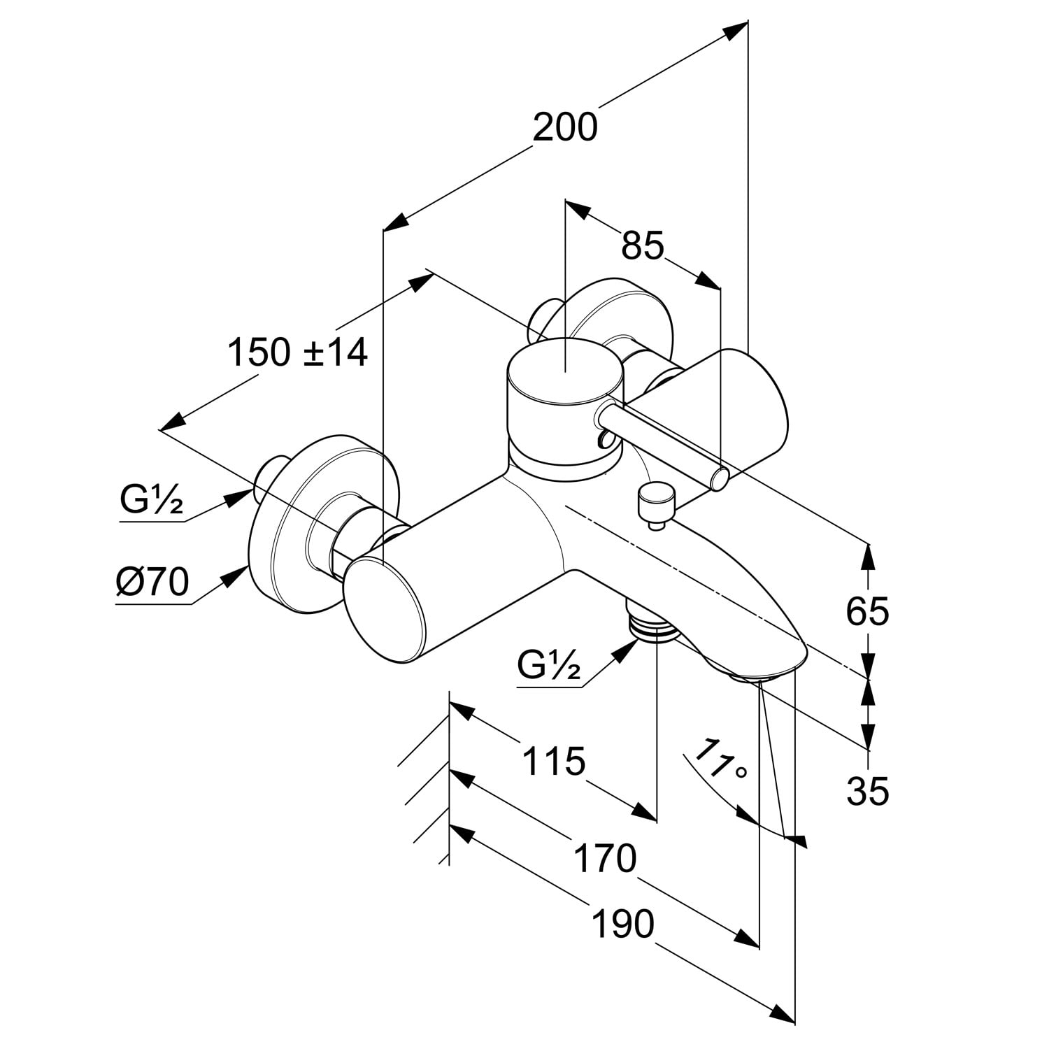 Kludi RENON Wannenfüll- und Brause-Einhandmischer