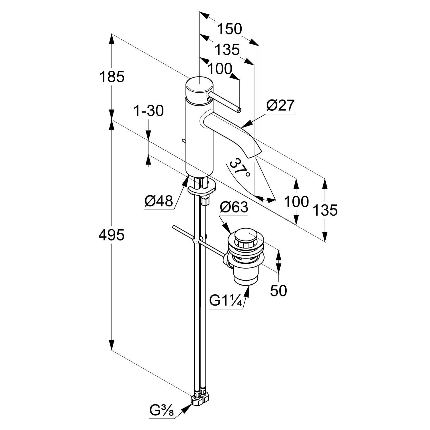Kludi BOZZ Waschtisch-Einhandmischer 100 mit Zugstangen-Ablaufgarnitur