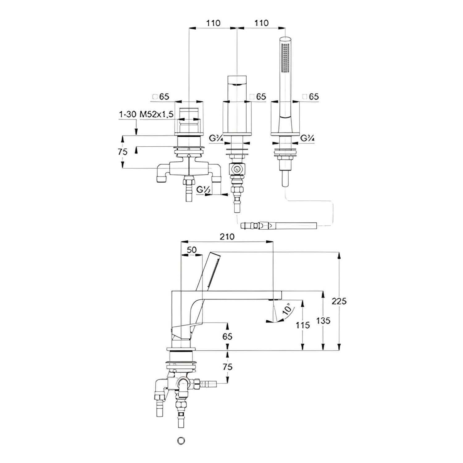 hansgrohe Metris 4-Loch-Wannenrandarmatur, DN15