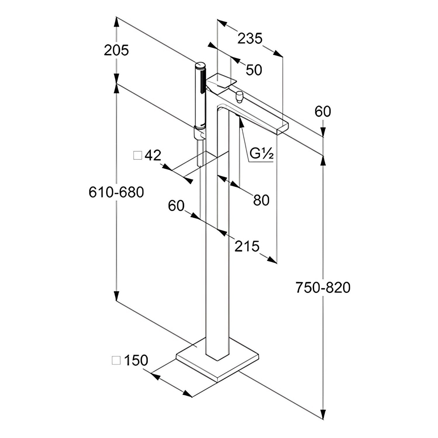 Kludi DECUS Wannenfüll-und Brause-Einhandmischer DN 15, für Bodenmontage