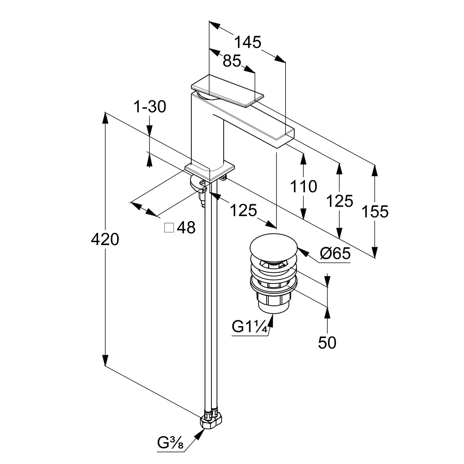 Kludi DECUS Waschtisch-Einhandmischer 110 ECO PLUS mit Push open Ablaufgarnitur