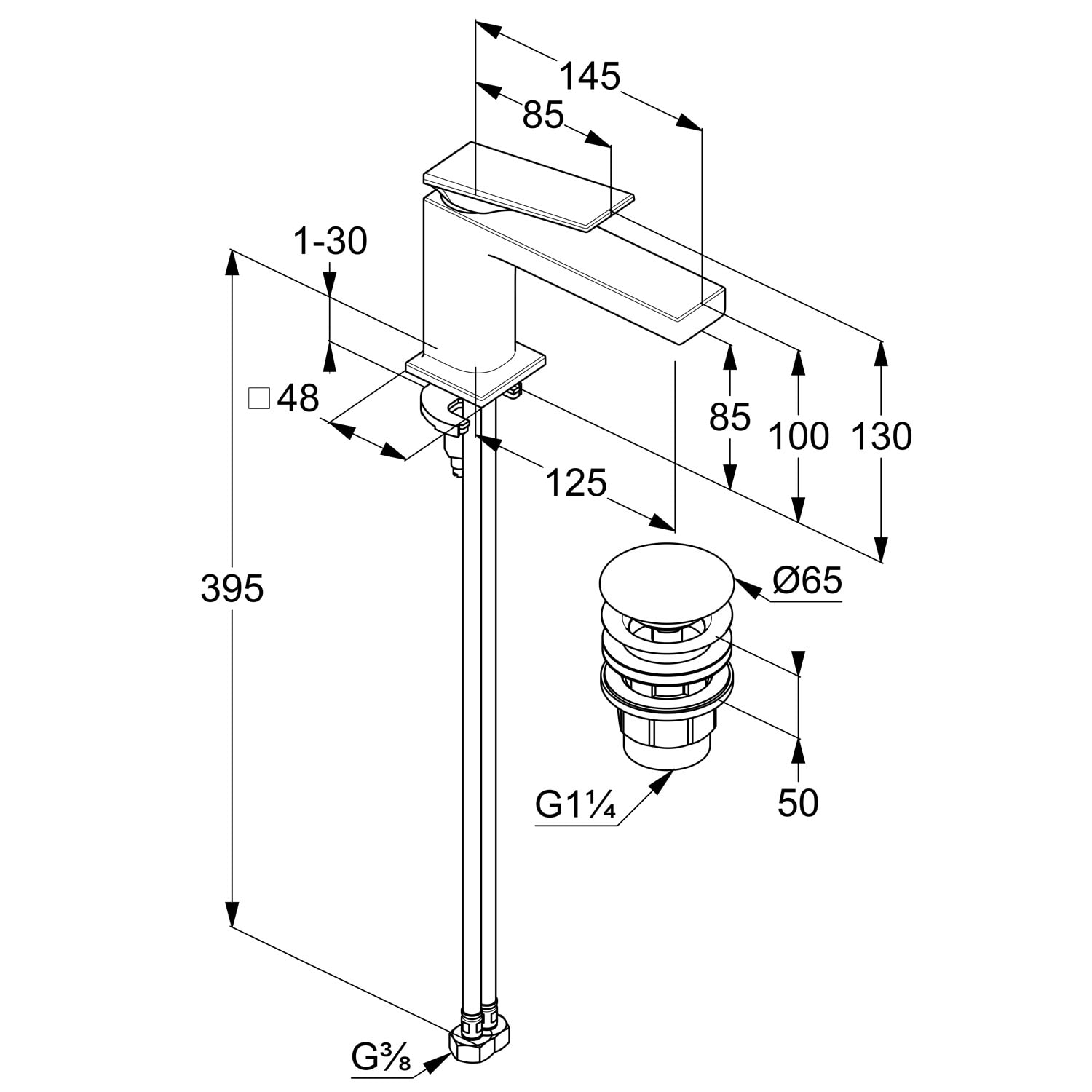 Kludi DECUS Waschtisch-Einhandmischer 85 ECO PLUS mit Push open Ablaufgarnitur