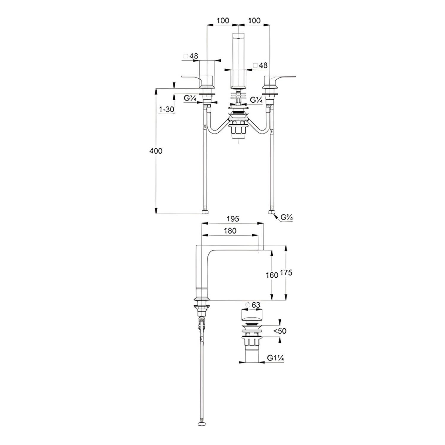 AXOR Citterio C 3-Loch Waschtischarmatur 125 mit Zugstangen-Ablaufgarnitur - Cubic cut