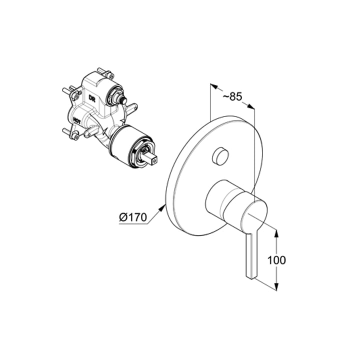 Kludi NOVA FONTE Puristic Unterputz-Wannenfüll- und Brause-Einhandmischer, eigensicher
