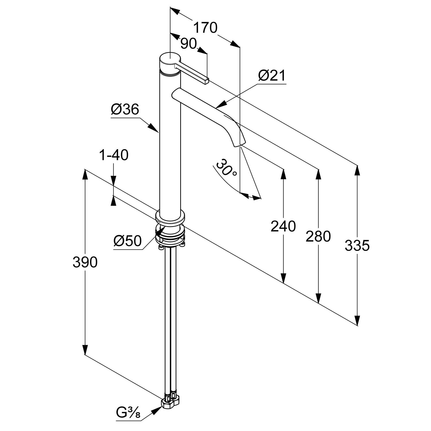 Kludi NOVA FONTE Pura Waschschüssel-Einhandmischer 240 ohne Ablaufgarnitur