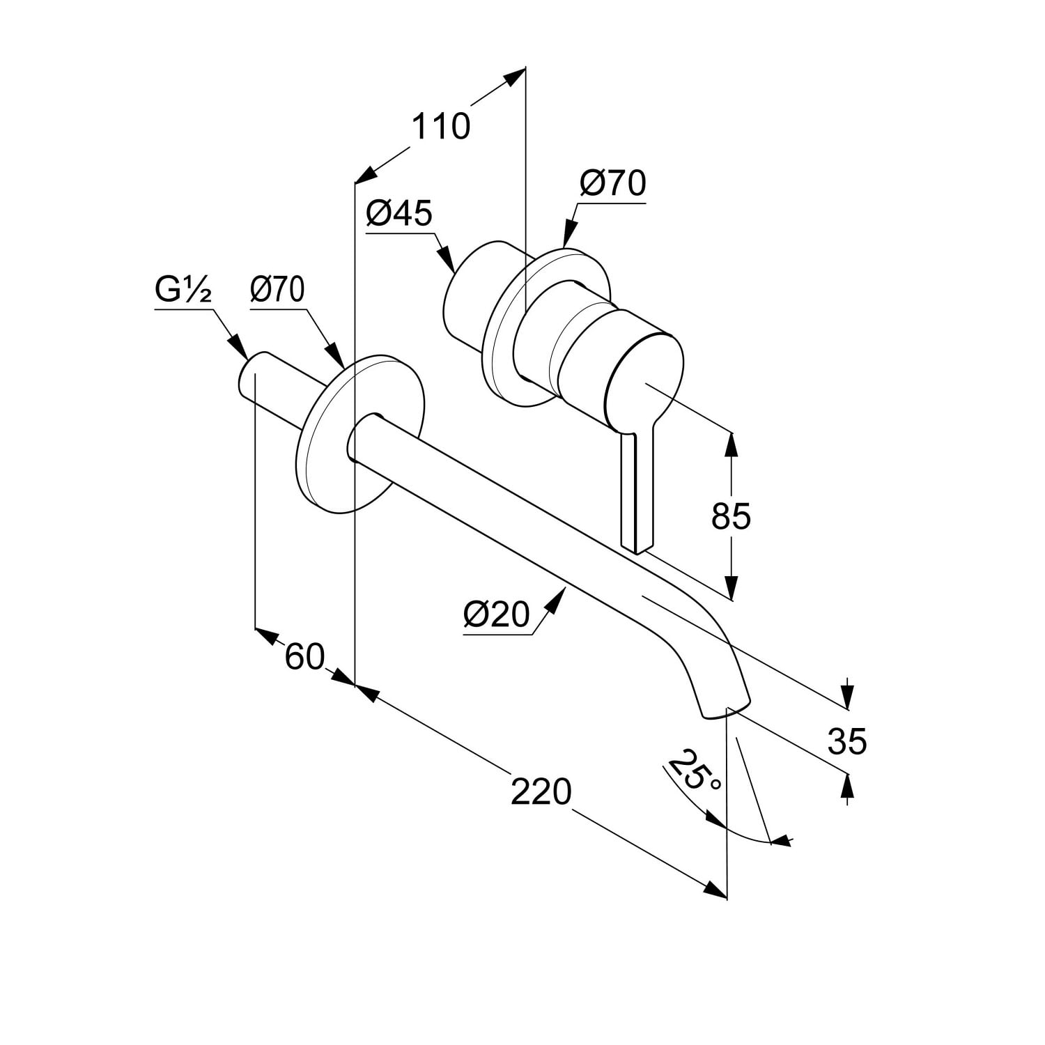 Kludi NOVA FONTE Pura Unterputz Waschtisch-Einhandmischer, Ausladung 22 cm