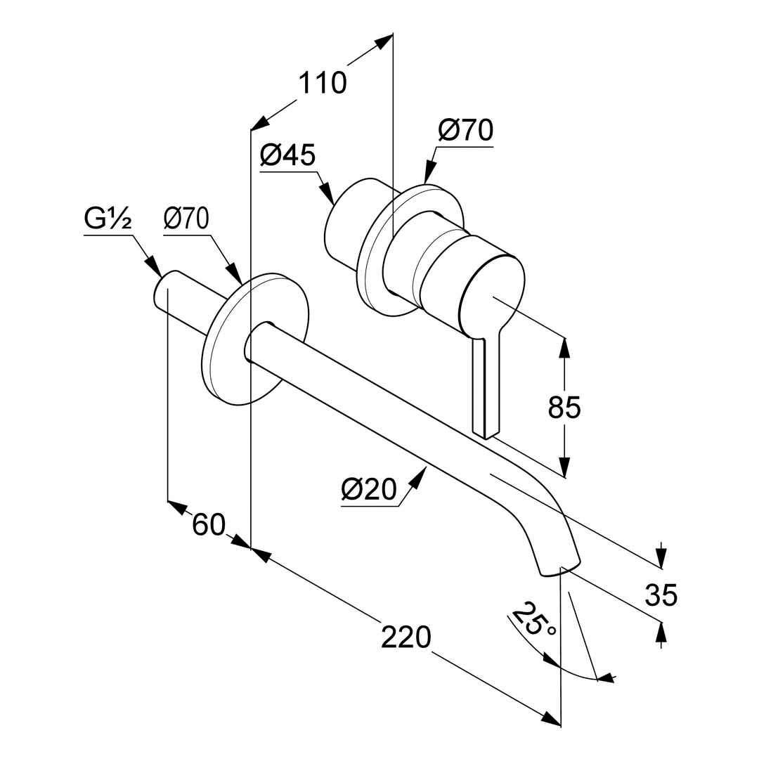 Kludi NOVA FONTE Pura Unterputz Waschtisch-Einhandmischer, Ausladung 22 cm