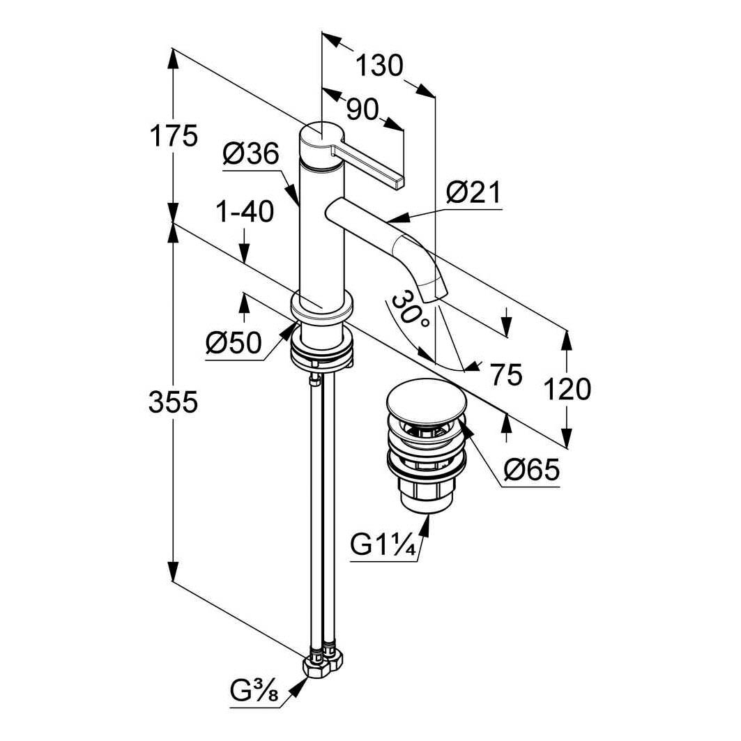 Kludi NOVA FONTE Pura Waschtisch-Einhandmischer 75 mit Push-Open Ablaufgarnitur