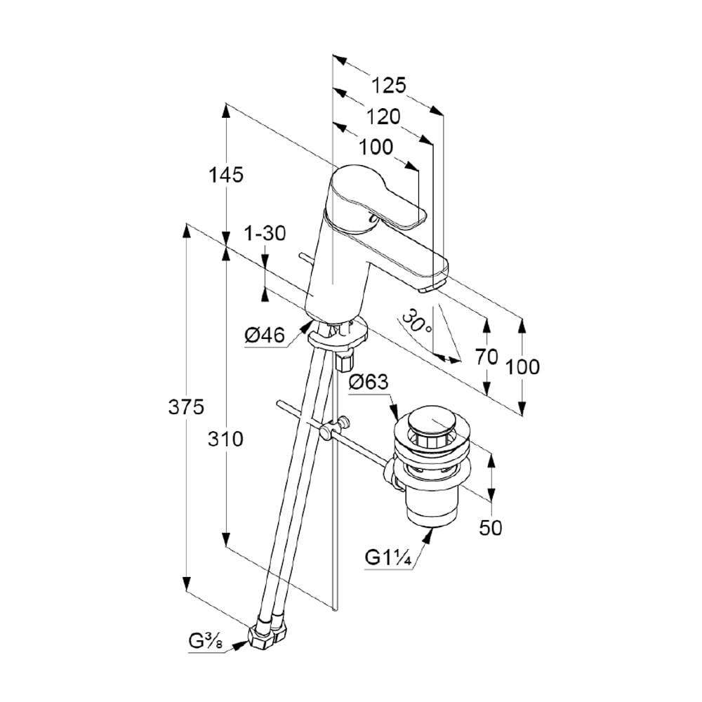- flexible Druckschläuche G 3/8