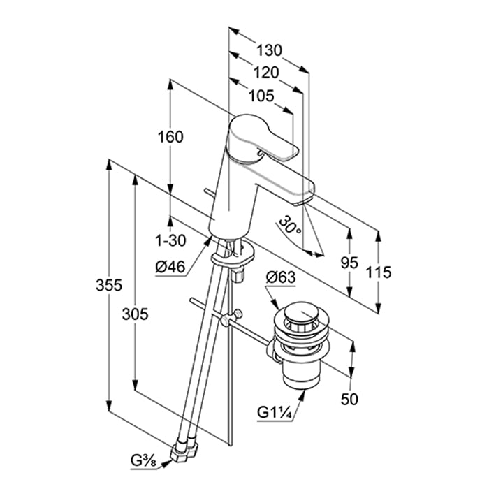 Kronenbach Radia 3.0 Waschtisch-Einhebelmischer mit Zugstangen-Ablaufgarnitur 1 1/4, wassersparend