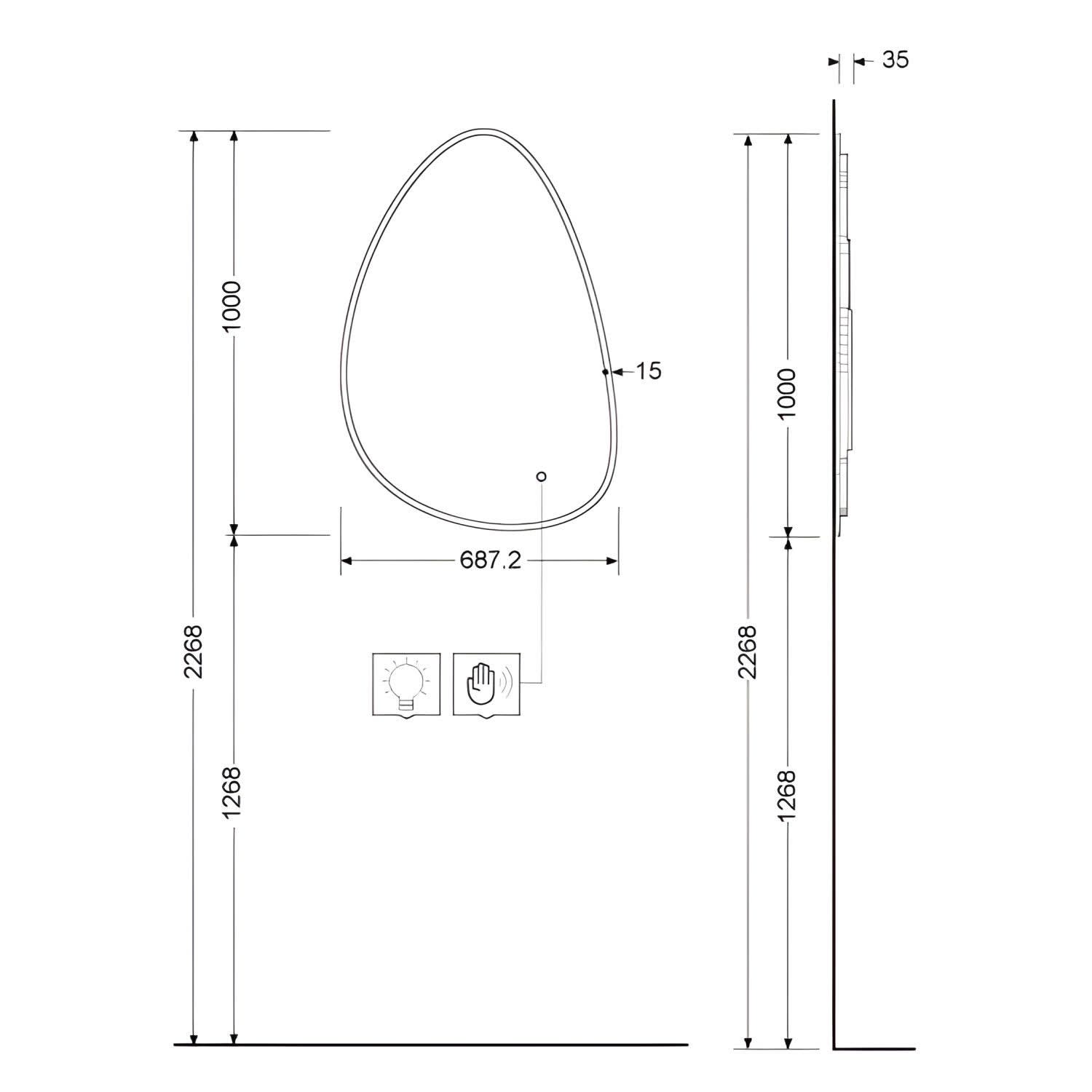 Riho Badspiegel Pebble 100 x 70 cm mit Heizung für optimalen Komfort