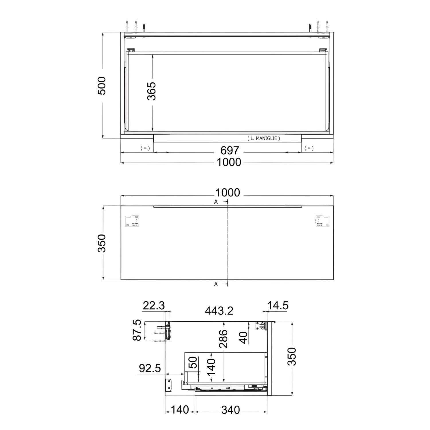 - Waschtischunterschrank: MDF mit Melaminbeschichtung, mit 1 Softclose-Auszug, Griffleiste aus Aluminium in schwarz matt