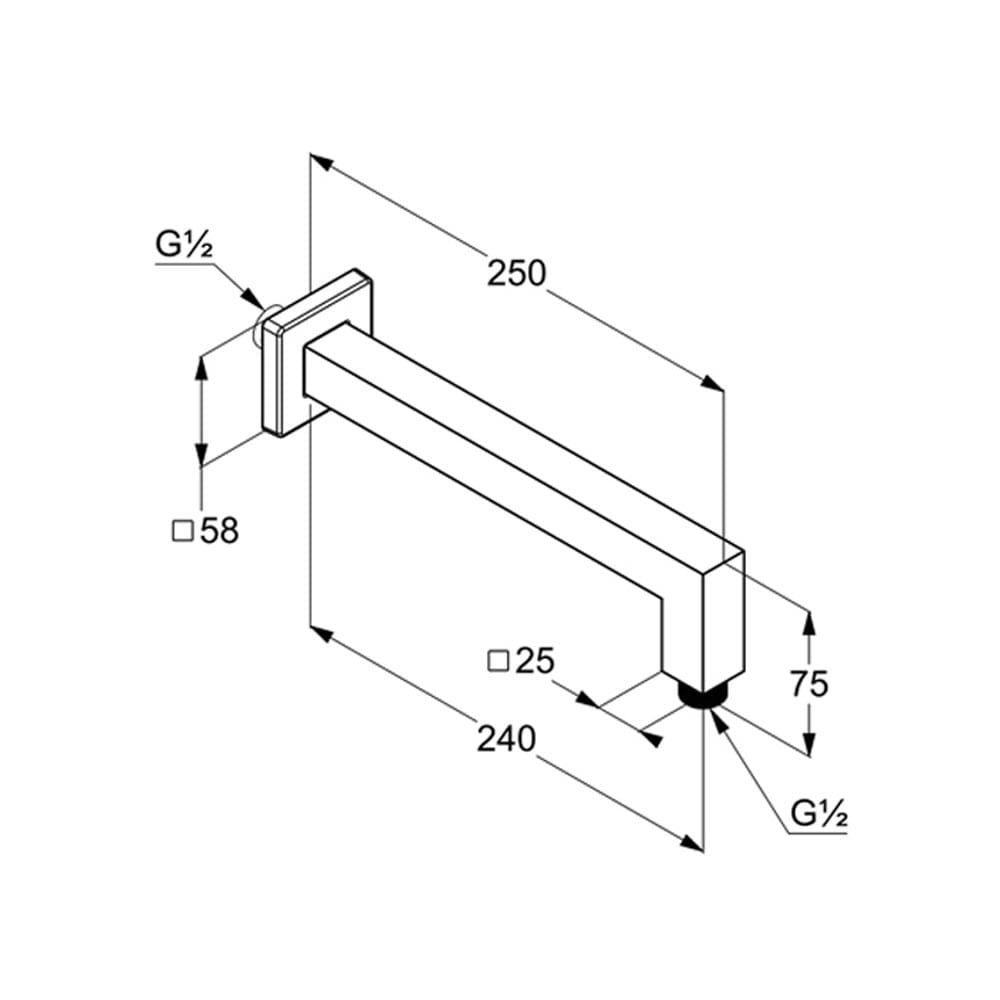 Kludi A-QA Wand-Brausearm eckig 25 cm, eckige Wandrosette