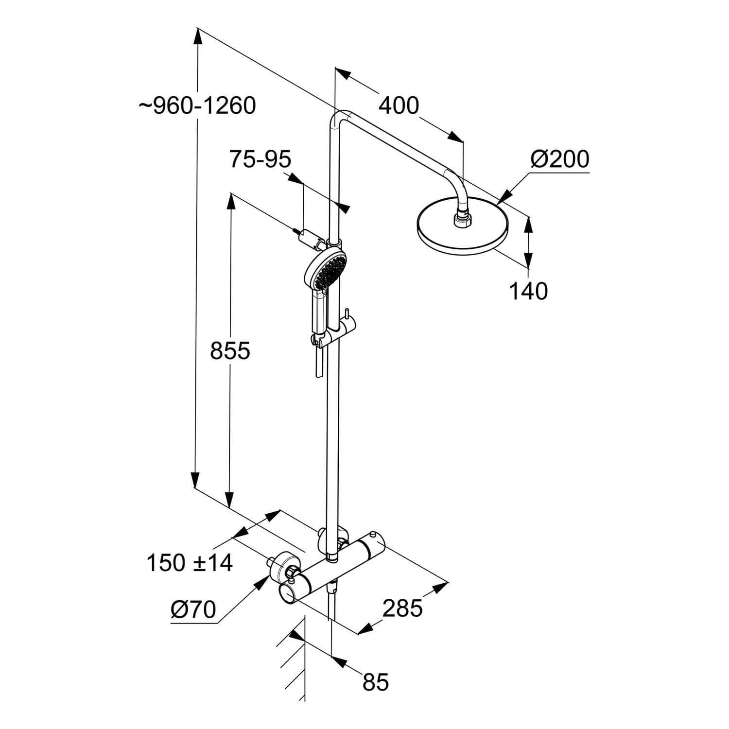 Steinkamp Living Thermostat Duschsystem AP mit Kopfbrause Ø 30 cm und Stabhandbrause, Höhenverstellbar