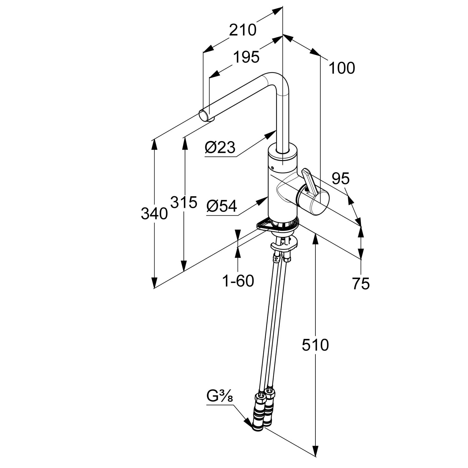 - flexible Anschlüsse G 3/8