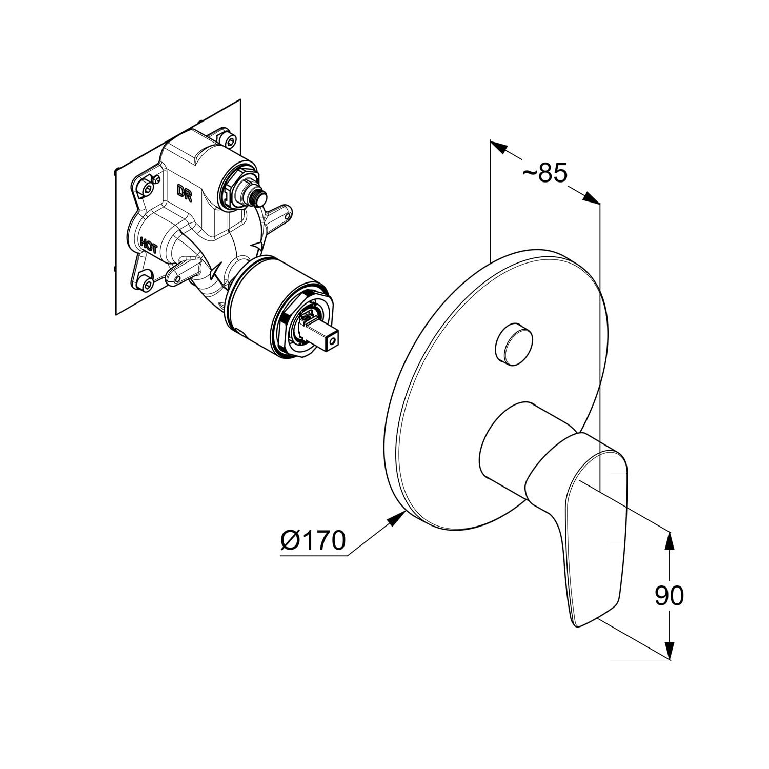Kludi PURE&SOLID Wannenfüll- & Brausearmatur Unterputz mit Push-Umstellung mit Sicherungseinrichtung