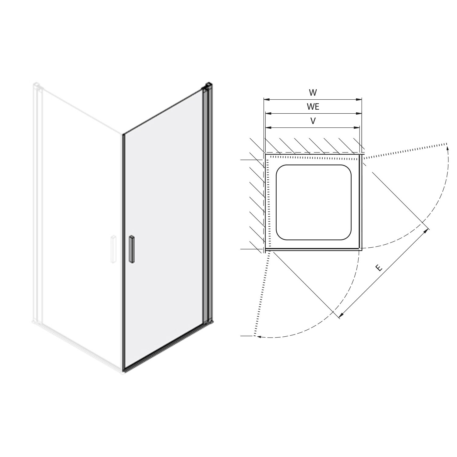Koralle SL450 Eckdusche Pendeltür rechts, Typ EPWS R 75, 75 x 200 cm, für Duschwanne