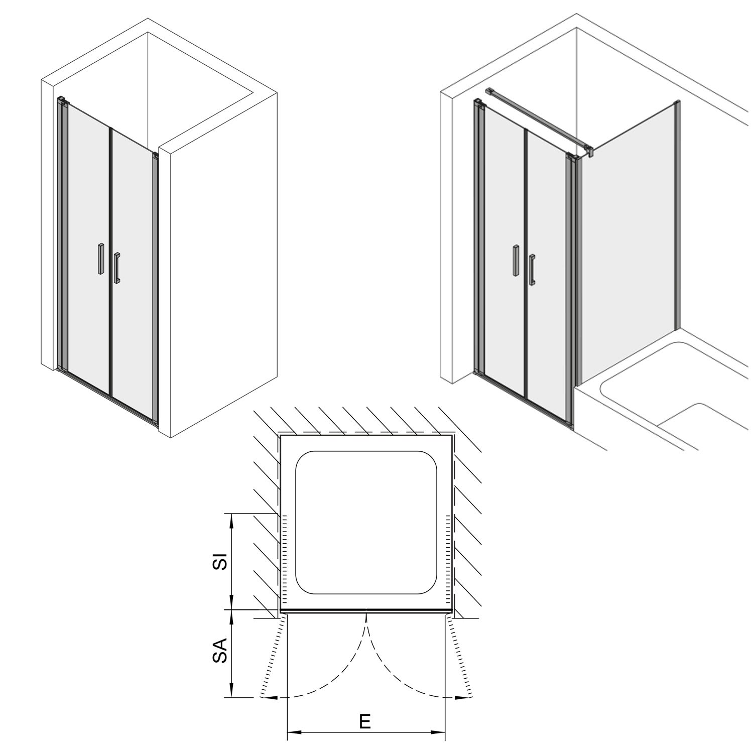 Koralle SL450 Pendeltür 2-flüglig für Nische, Typ NP2W 120, 120 x 200 cm