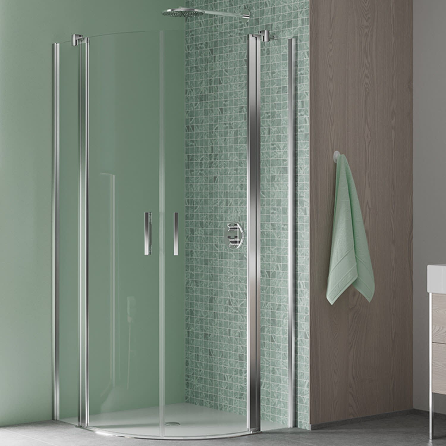 Koralle SL450 Viertelkreis Pendeltür mit Festteil rechts, Typ VPFS R 100, 100 x 200 cm, R= 55 cm, für Duschwanne