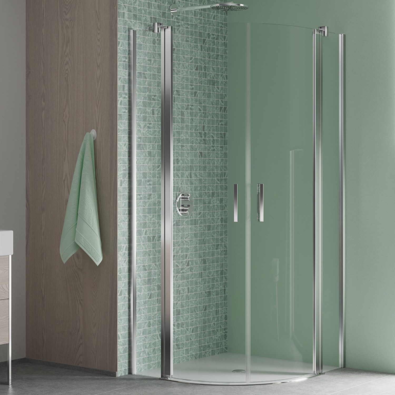 - 2-teilig mit Festelement und gebogenem Pendelelement (öffnet nach innen und außen)