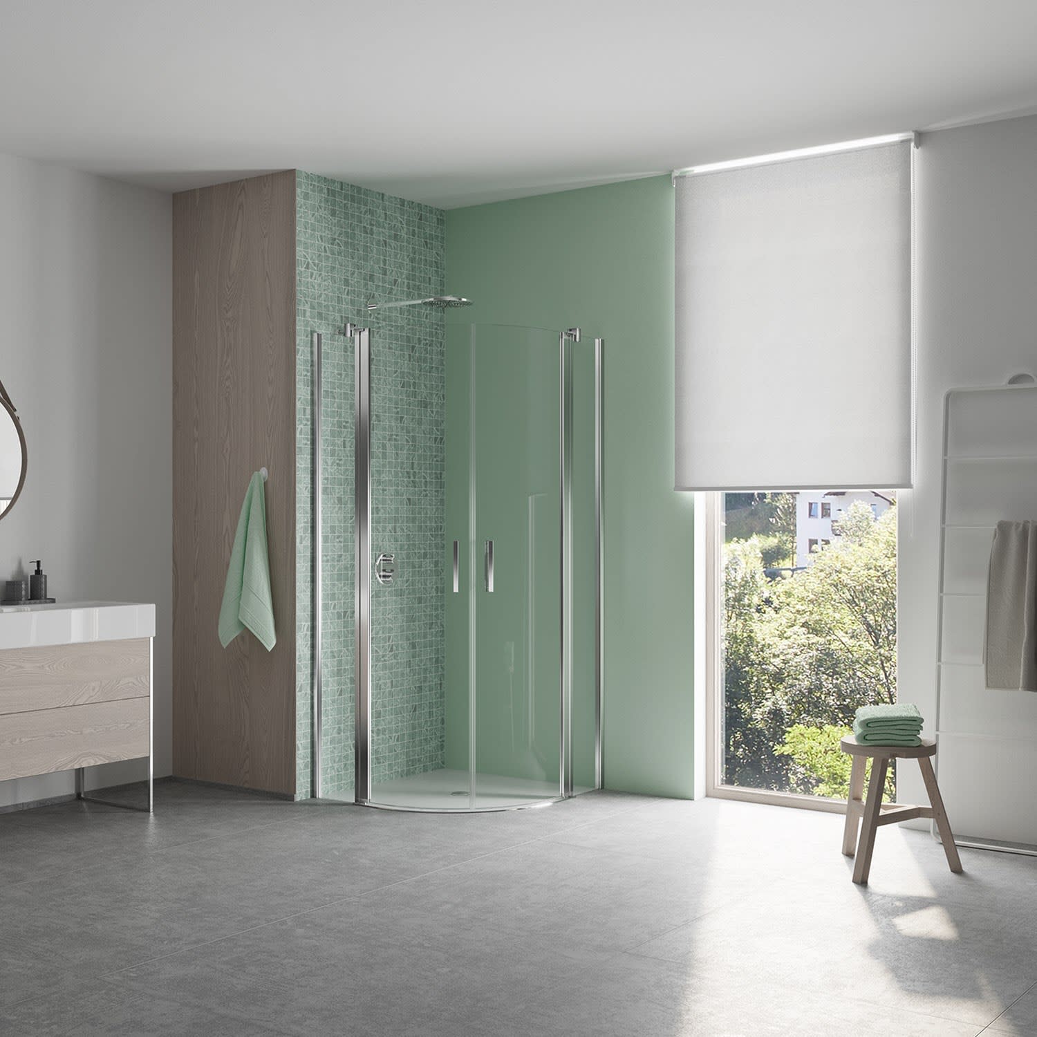Koralle SL450 Viertelkreis Pendeltür mit Festteil rechts, Typ VPFBOS R 100, 100 x 200 cm, R= 55 cm, bodengleich
