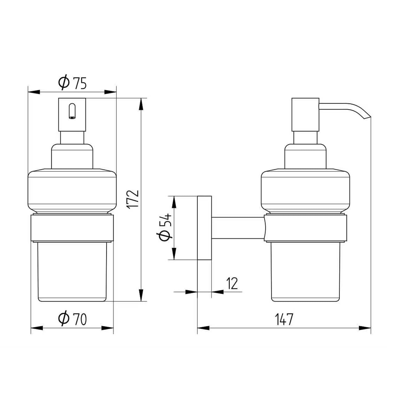 H: 17,2, Ø 7,5, Ausladung 14,7 cm