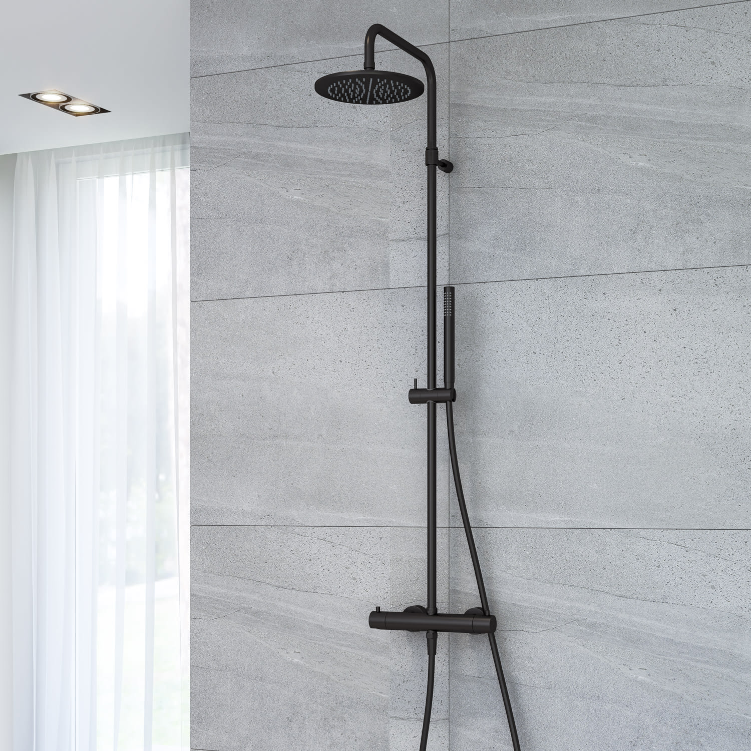Kronenbach Lima 2.0 Black Duschsystem mit Thermostat, Kopfbrause Ø 22,5 cm