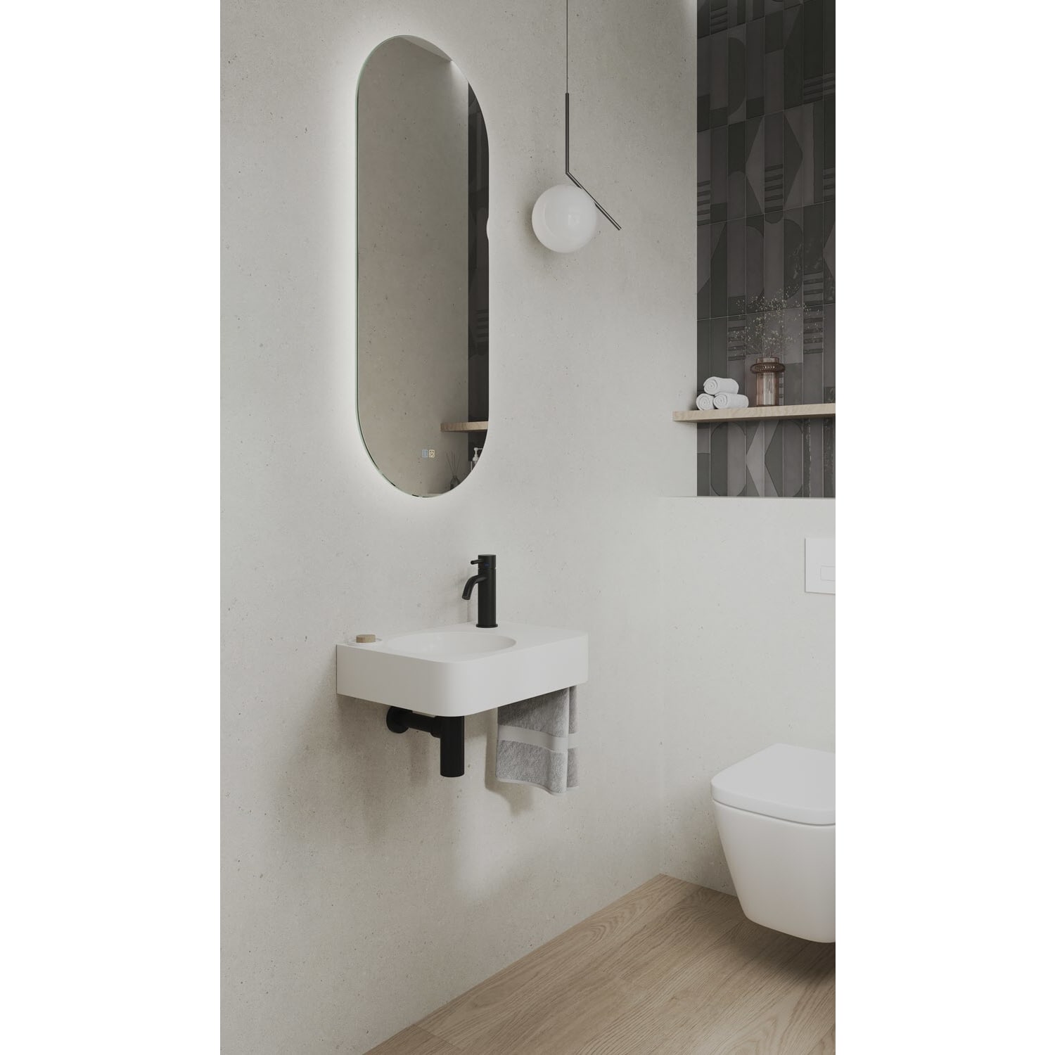 Kronenbach Stone Handwaschbecken 38 x 19 cm Becken rechts mit Hahnlochbohrung