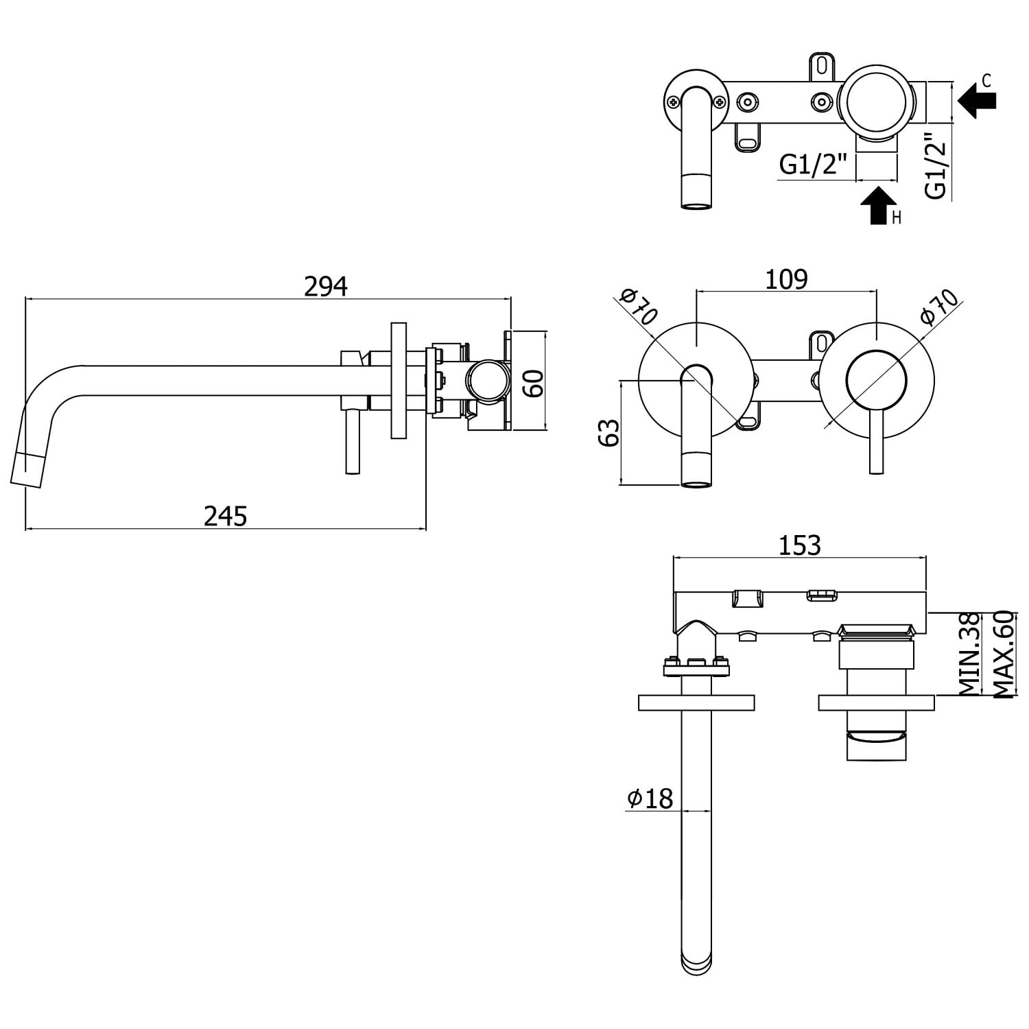Kronenbach Lima 2.0 White Waschtisch-Wandarmatur 24,5 cm inkl. Grundkörper