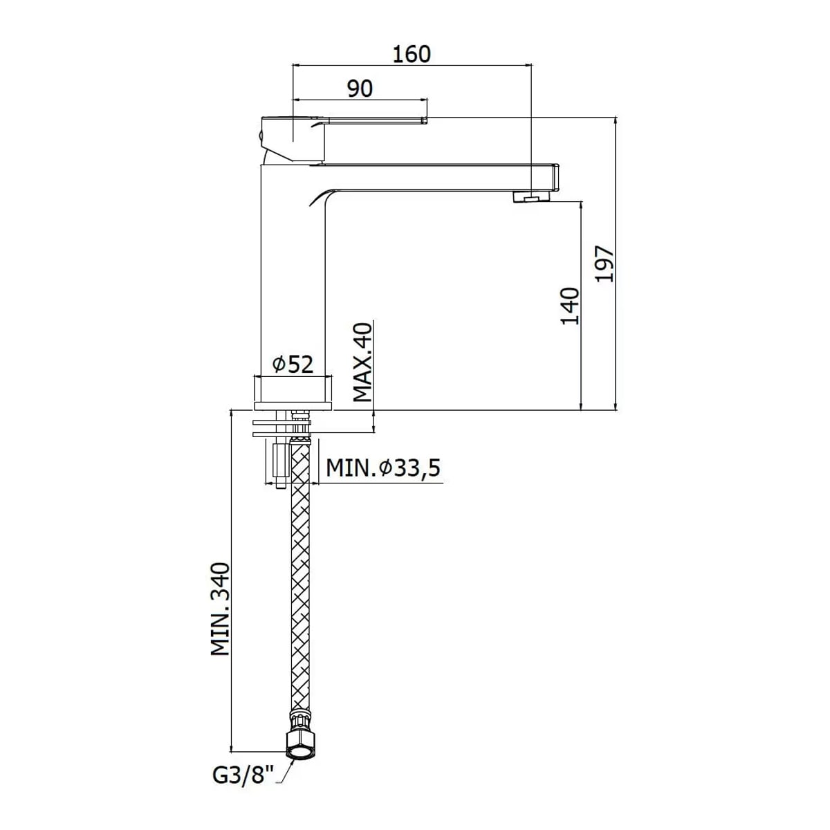 - mit flexiblen Anschlusschläuchen 3/8" aus Edelstahl Länge: mind. 35 cm