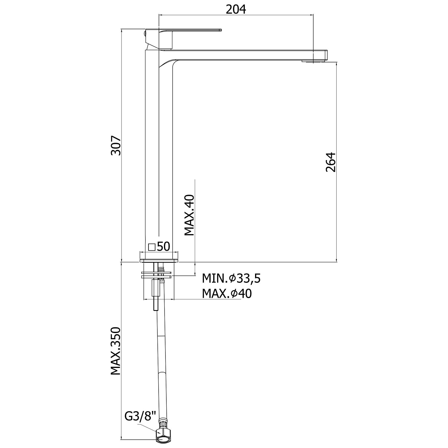 - mit flexiblen Edelstahl-Anschlussschläuchen 3/8" DVGW zertifiziert (KTW zugelassen) 45 cm