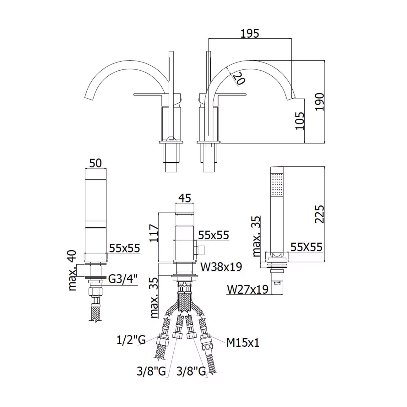 Kronenbach Quara 3.0 3-Loch Wannenrandarmatur