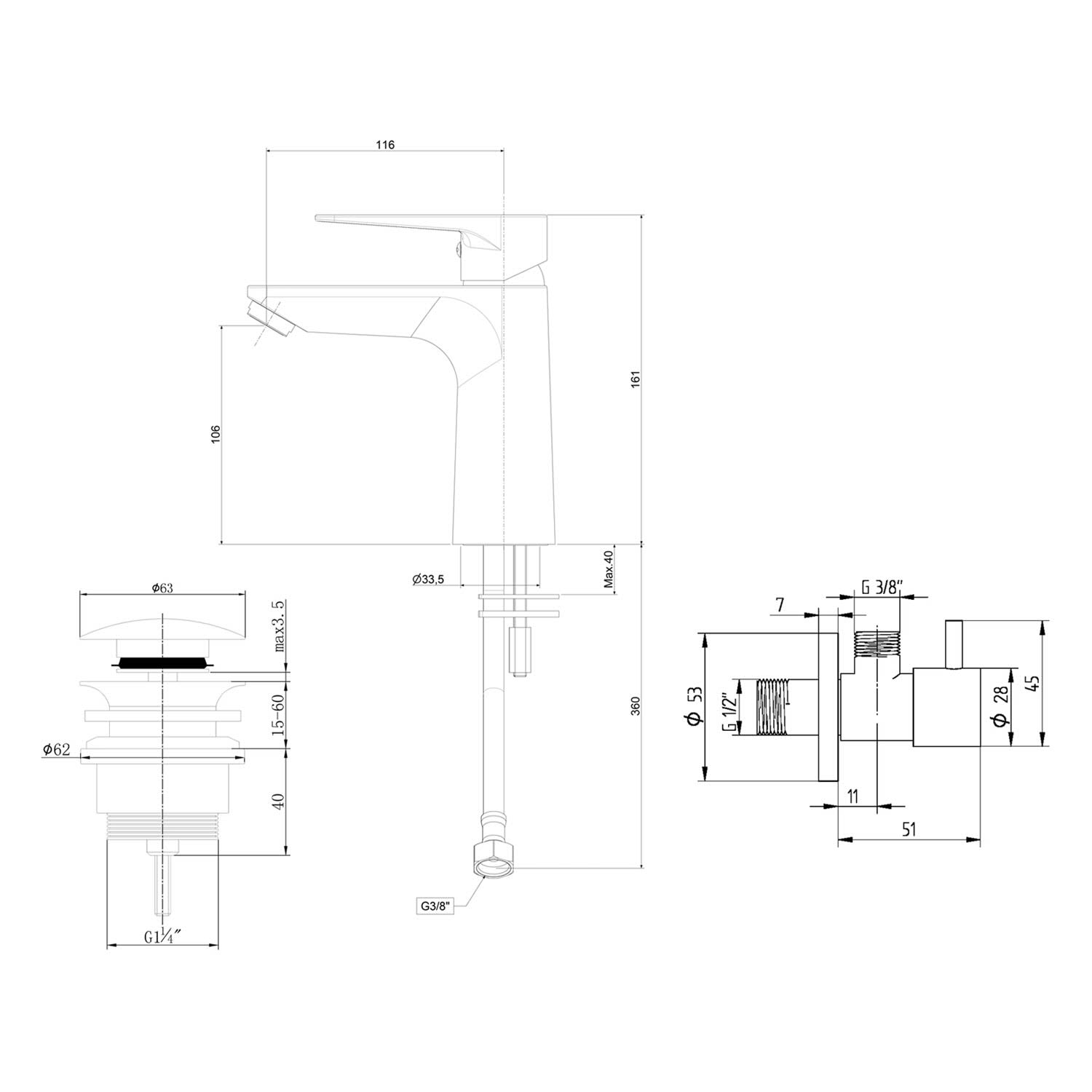 Kronenbach Radia 3.0 Montage- und Armaturenset für Waschtisch