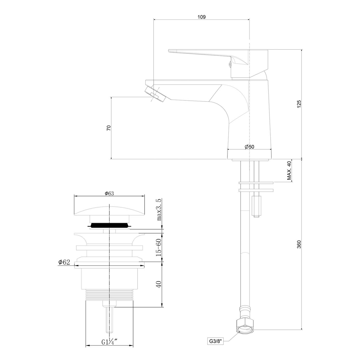 Kronenbach Radia 3.0 Waschtisch-Einhebelmischer S mit Pop UP Ablaufventil, wassersparend