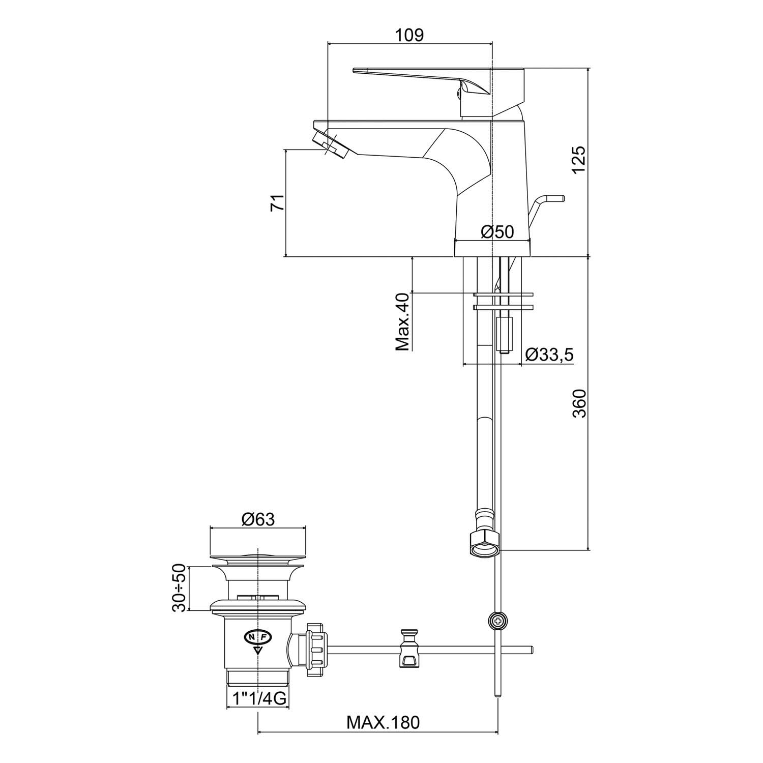Kronenbach Radia 3.0 Waschtisch-Einhebelmischer S mit Zugstangen-Ablaufgarnitur 1 1/4, wassersparend