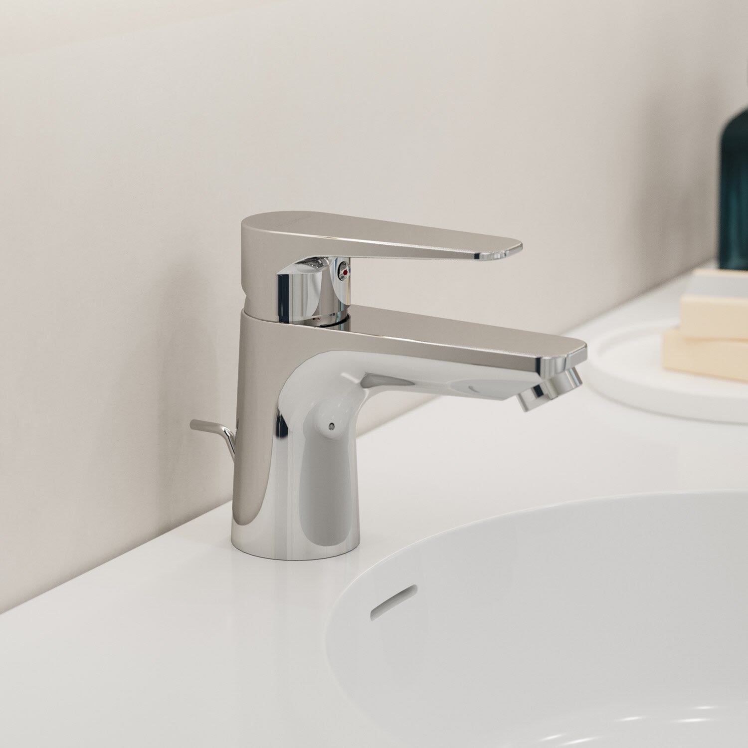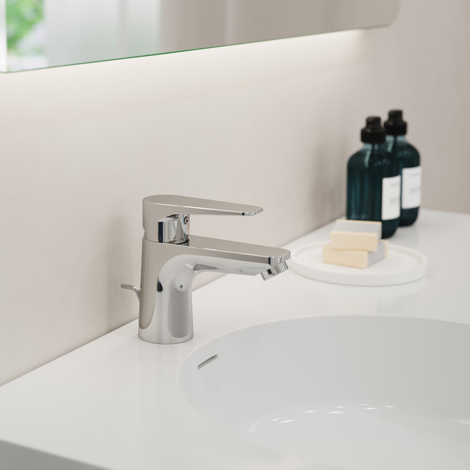 Kronenbach Radia 3.0 Waschtisch-Einhebelmischer S mit Energiespar-Funktion, mit Zugstangen-Ablaufgarnitur 1 1/4, wassersparend